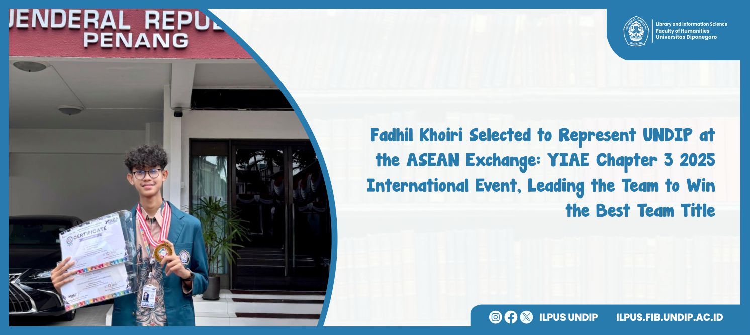 Semarang, September 4, 2025 -Exciting news comes from Fadhil Khoiri, a student majoring in Library and Information Science at Diponegoro University, who has achieved international success in the ASEAN Exchange: Youth Inter-Action Exploration (YIAE) Chapter 3, organized by Indonesian Youth Action (IYA) from August 11–16, 2025, in three countries: Singapore, Malaysia, and Thailand.