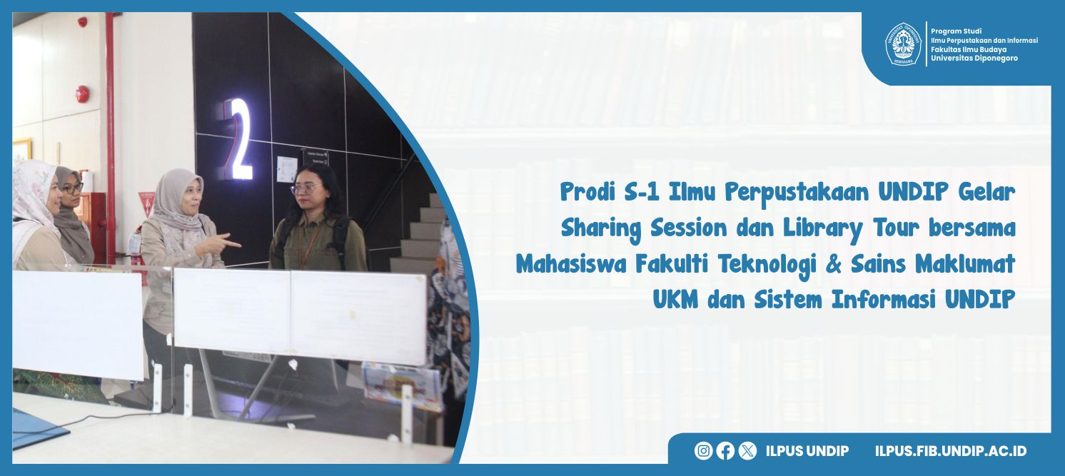 Semarang, 9 September 2025 – Program Studi Ilmu Perpustakaan dan Informasi, Fakultas Ilmu Budaya, Universitas Diponegoro menyelenggarakan Sharing Session dan Library Tour antara mahasiswa doktoral dari Fakulti Teknologi & Sains Maklumat Universiti Kebangsaan Malaysia (UKM) dan mahasiswa Sistem Informasi Universitas Diponegoro. Kegiatan ini diselenggarakan sebagai upaya memperluas wawasan akademik, memperkuat jejaring kerja sama, serta mendorong kolaborasi internasional di bidang ilmu informasi.