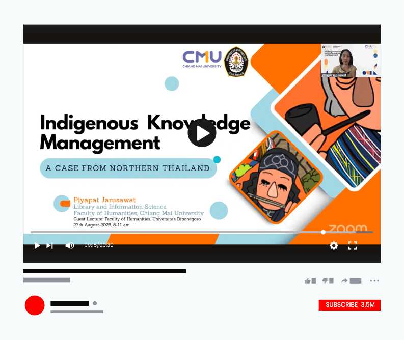 Hi, Libs! 👋 Yuk, ikuti kuliah tamu Visiting Professor bareng Piyapat Jarusawat, Ph.D. Beliau akan berbagi insight menarik seputar Indigenous Knowledge Management yang pastinya bakal nambah wawasan dan perspektif baru buat kita semua! 👩🏫 Piyapat Jarusawat, Ph.D. from Chiang Mai University, Thailand 📌 Visiting Professor 📖 Tema: Indigenous Knowledge Management 🗓️ Tanggal: 27 Agustus 2025